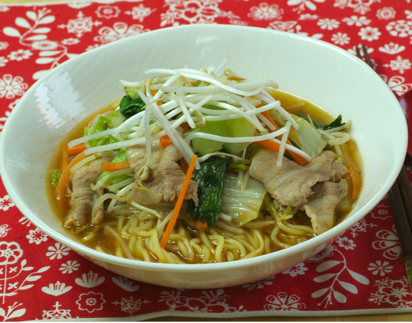 フライパンひとつで! 野菜たっぷりラーメン日清食品グループ。