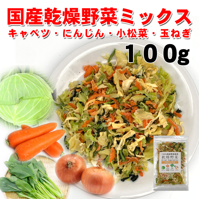 乾燥野菜国産ミックス 100g キャベツ にんじん 小松菜 玉ねぎ ドライベジタブル ラーメンの具 即席みそ汁の具 エアドライ製法。