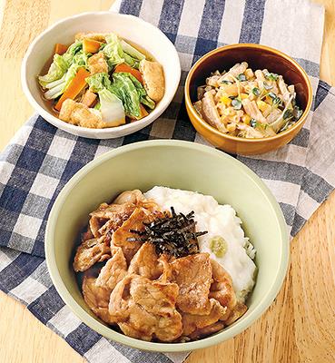 麦とハーブの三元豚とろろ丼 明太マカロニサラダレンジ煮浸し 食材宅配のヨシケイ 夕食ネット レシピ・メニュー・献立付き。