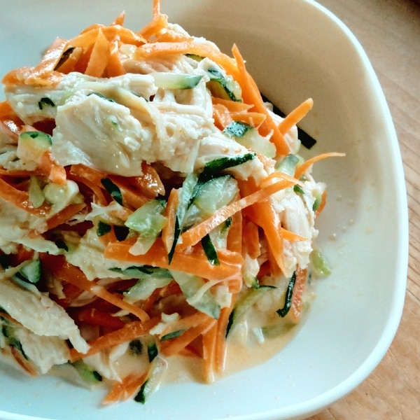 蒸し鶏きゅうりのごまだく♡中華サラダ作り置きレンジ。