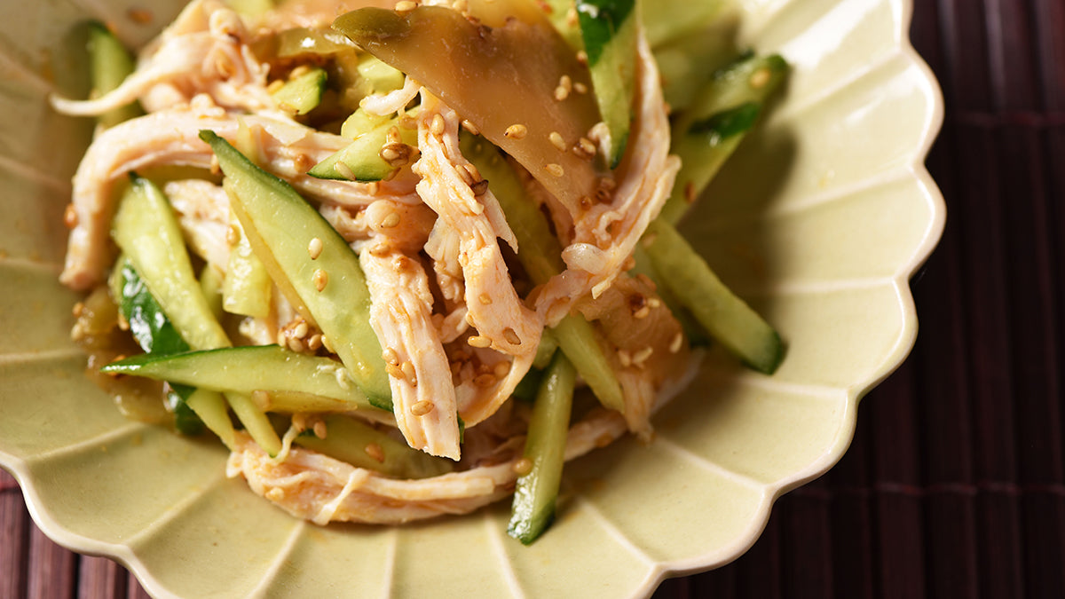 無限にいける! きゅうりと蒸し鶏のピリ辛中華サラダ。