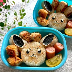 幼稚園お弁当記録𓎩𓌈 今日はイーブイ弁当です𐩢𐩺ˊ˗ カナヘイさんの@kanahei_ポケモンシリーズから イーブイを作りました𖠋𖠋娘のイーブイは 娘の希望で目を変えています♡⸒⸒ 醤油で色をつけるのは @momokyaraben さんのイーブイを 参考にさせていただきました。