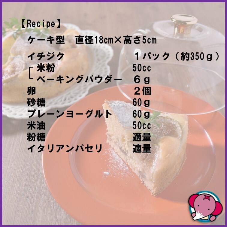 JAあいち中央 あいち中央農業協同組合on X: "いちじくのヨーグルト米粉ケーキ オーブンで焼くことでイチジクがさらに甘く、ジャムのようにとろっとした食感になります。YouTubeで公開中! https:t.co T0tgm9vp4jいちじくのヨーグルト米粉ケーキACT旬を。