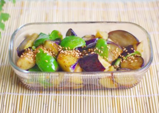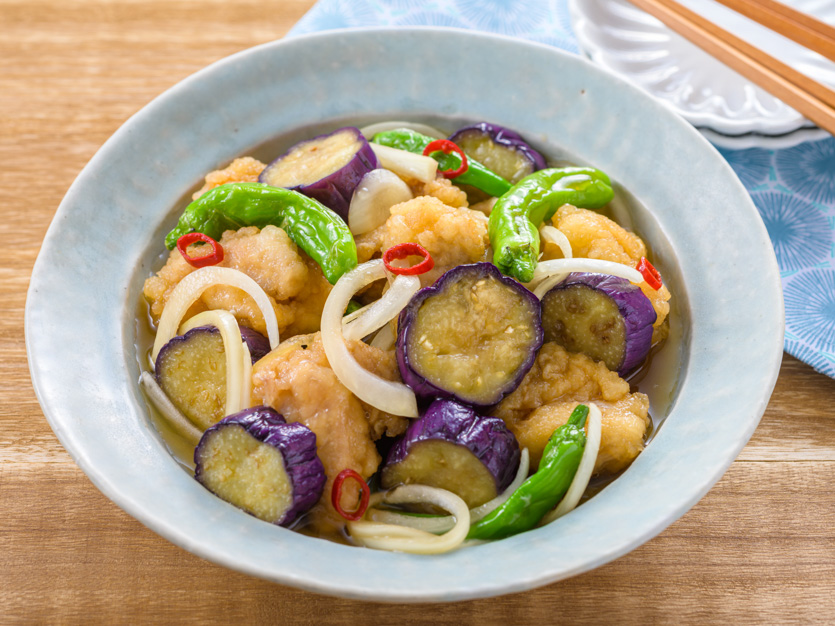 揚げなすの中華風南蛮漬け「べんりで酢」に漬けるだけ簡単。