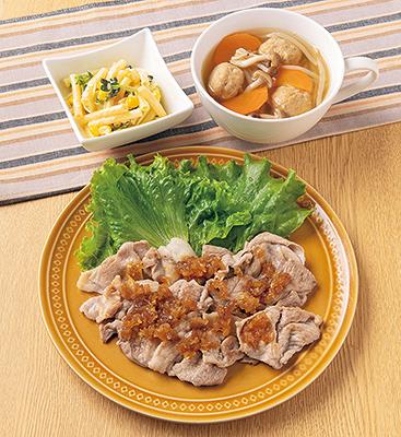 ポークソテー~オニオンソース~ 肉団子入りコンソメスープマカロニサラダ 食材宅配のヨシケイ 夕食ネット レシピ・メニュー・献立付き。