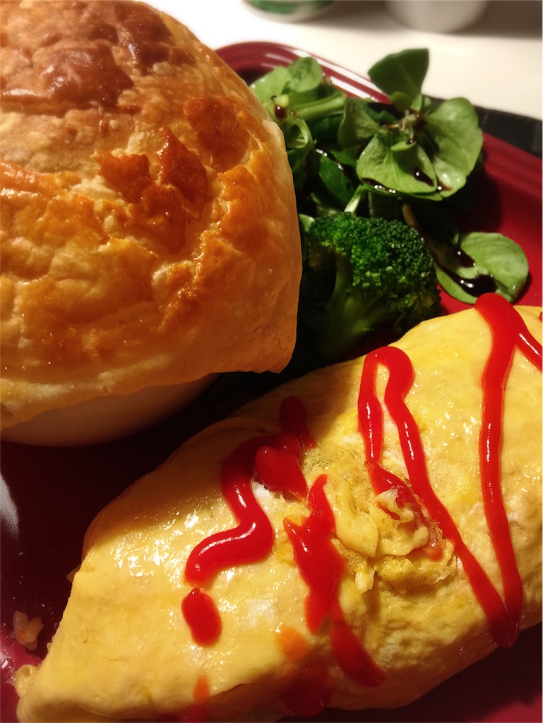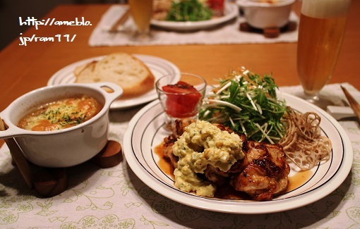ナポリタンと車麩のオニオンスープと付け合せおかずの献立レシピあゆmemo。