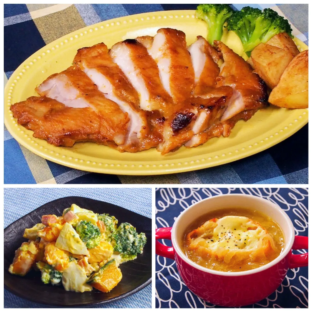 献立 スチーム野菜、スチームベーコン、オニオングラタンスープ : kajuの□今日のお料理・簡単レシピ□。