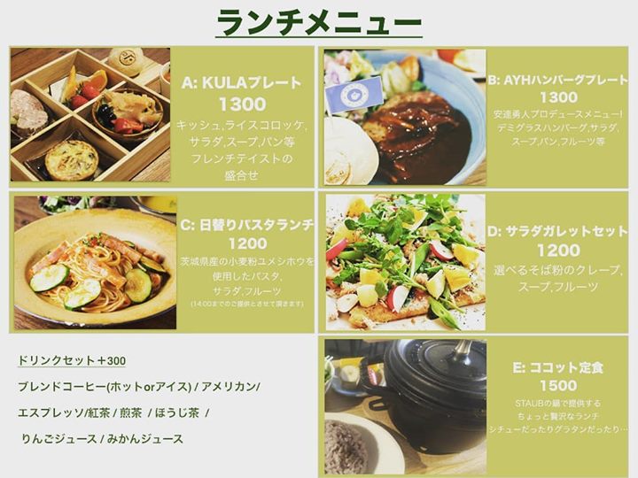 メニュー笠間稲荷神社門前の土蔵をリノベーションしたカフェ&バー庭カフェKULA。
