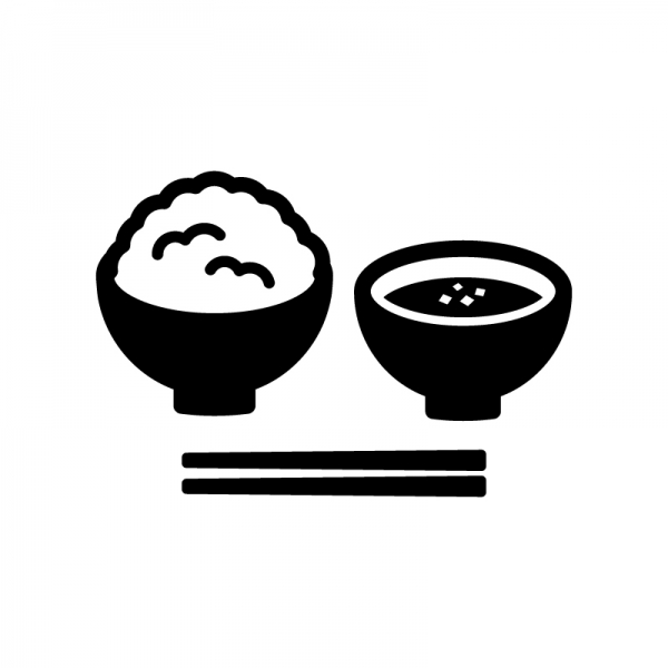 ご飯とみそ汁のシルエット無料のAi・PNG白黒シルエットイラスト。