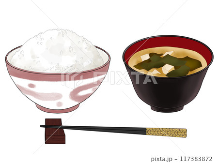 ご飯と味噌汁 箸付きのイラスト素材117383872- PIXTA。