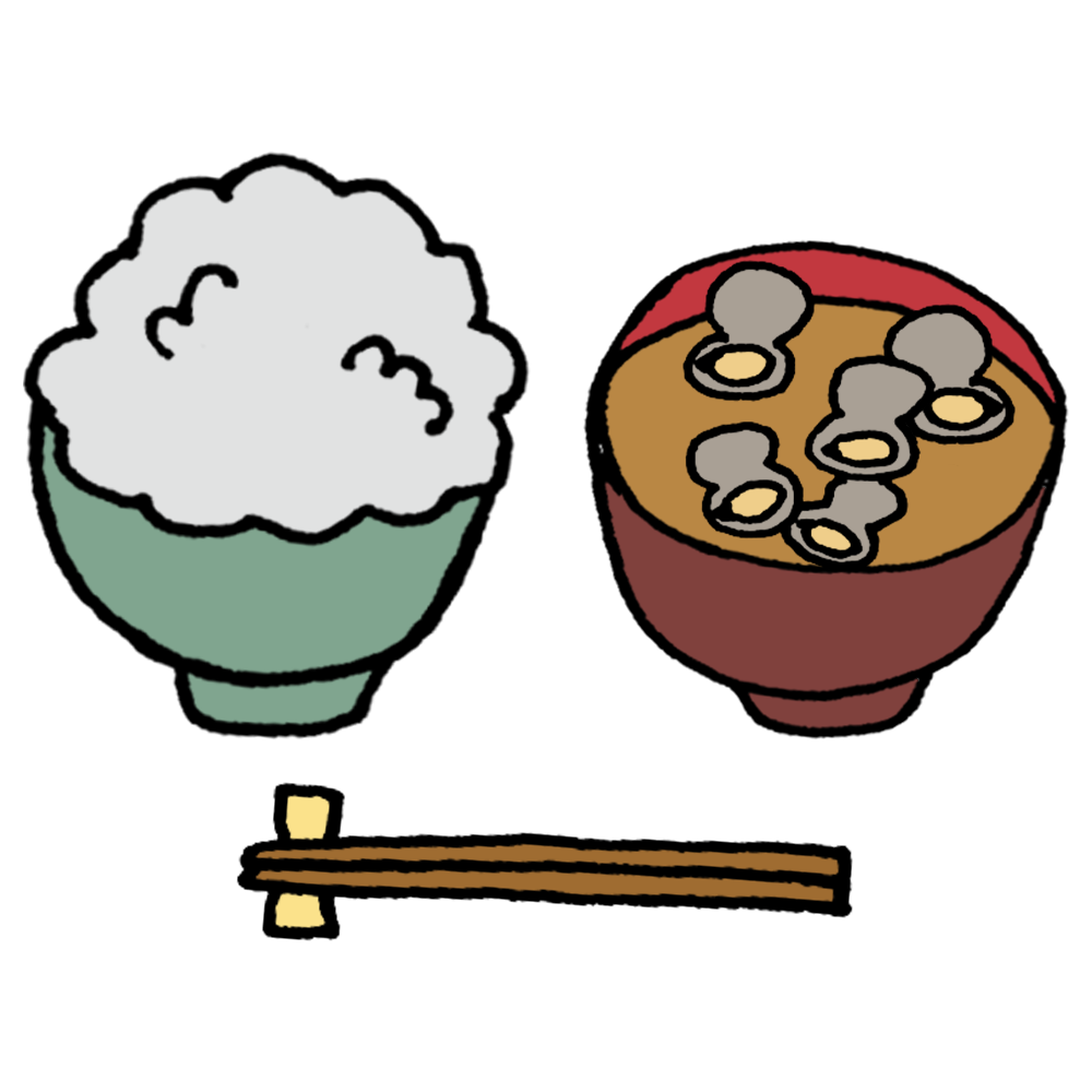 お味噌汁とご飯のイラストかわいい無料イラスト素材「てがきら」。
