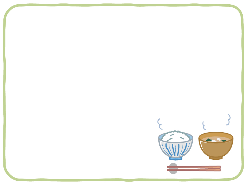 ご飯とお味噌汁の緑色フレーム飾り枠イラスト無料イラスト かわいいフリー素材集 フレームぽけっと。