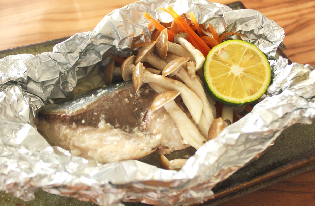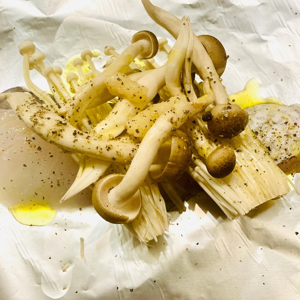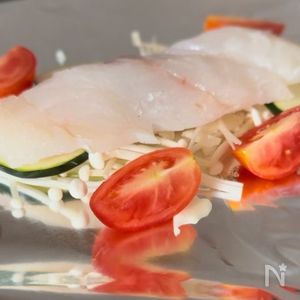 京料亭白だしで作ろう!白身魚 タラ としめじのホイル焼き。