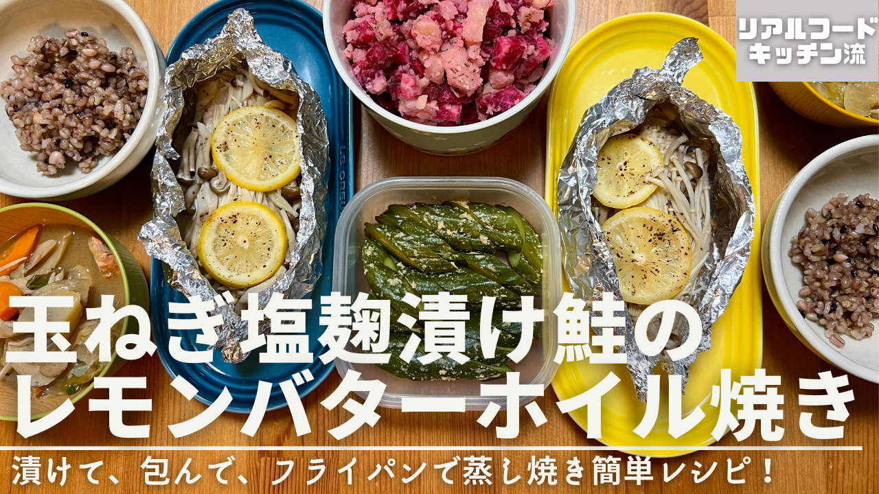 フライパンで簡単 玉ねぎ塩麹漬け鮭のレモンバターホイル焼き - リアルフードキッチン REALFOODKITCHEN。