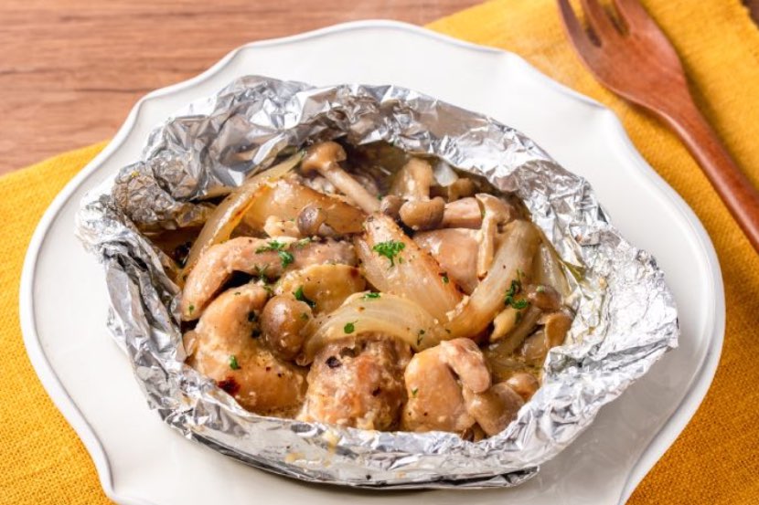 レシピあり🙆♀️ .鶏胸肉ときのこの塩麹ホイル焼き. 今回はホイル焼きシリーズです✨🌿 . 塩麹の優しい味わいとあっさりとした味わいのきのこがとてもよく合う一品😁💕ホイルに包んだ後はトースターにお任せなので、とっても楽チン❣️ 気になった方は是非お試し。