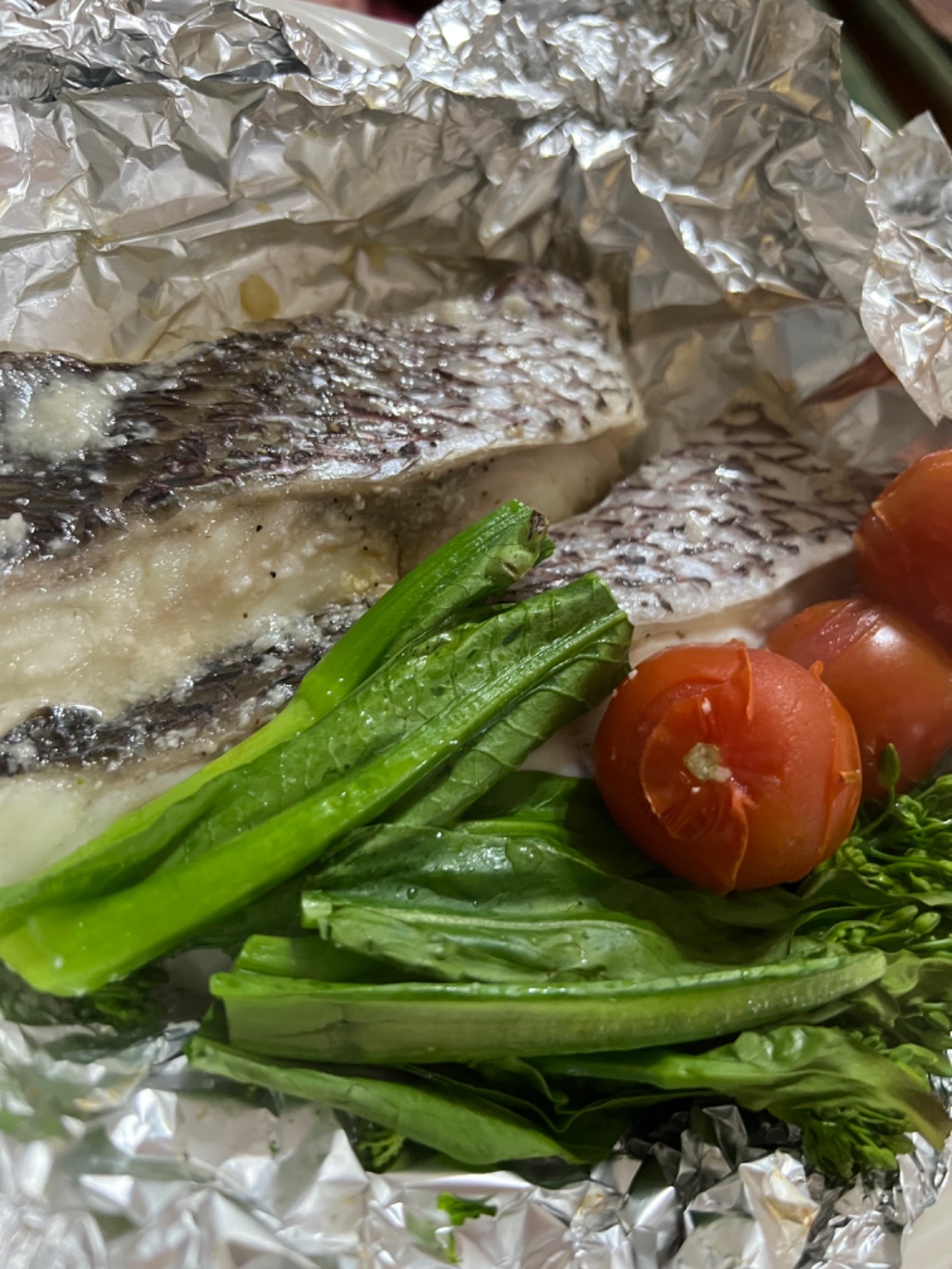 白身魚のふっくらホイル焼き🐟🍅おみそならハナマルキ。