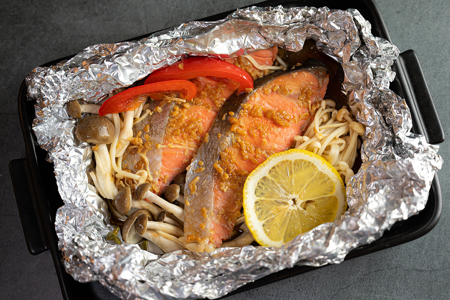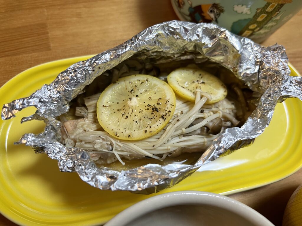 簡単美味しい!鮭としめじの献立みそバターホイル焼き。
