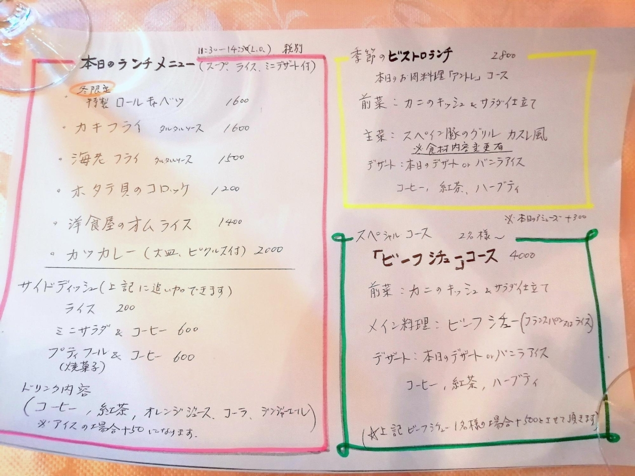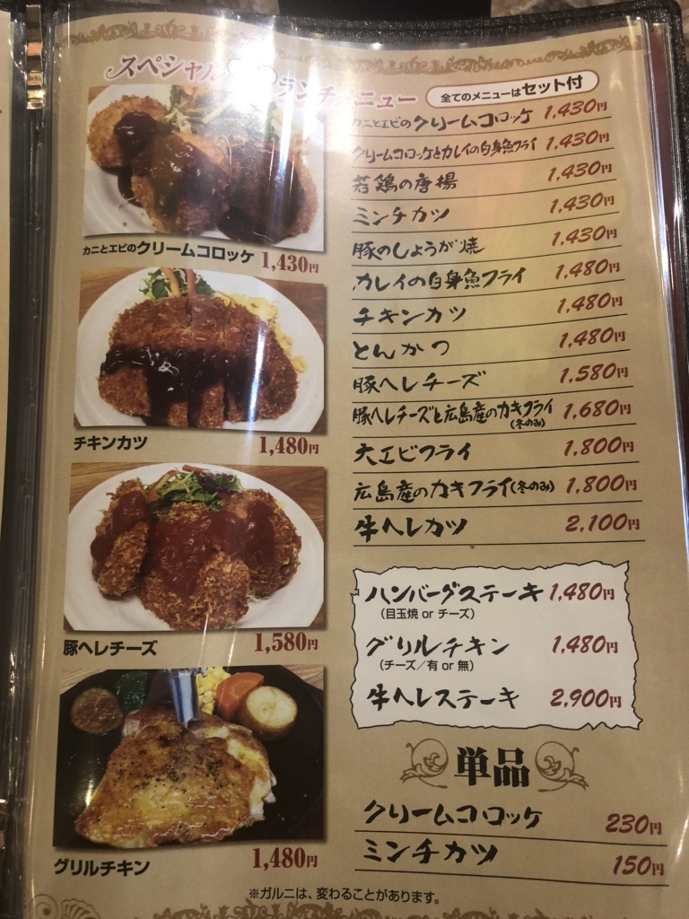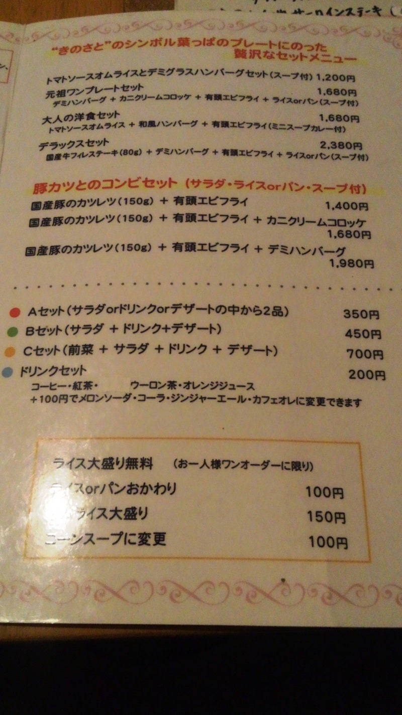 洋食家 きのさと のメニュー表2@春日井市美味しいものを食べようin愛知。