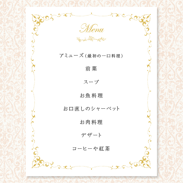 コース料理のメニューの書き方について教えてください。 - メニュー表を作っ- Yahoo!知恵袋。