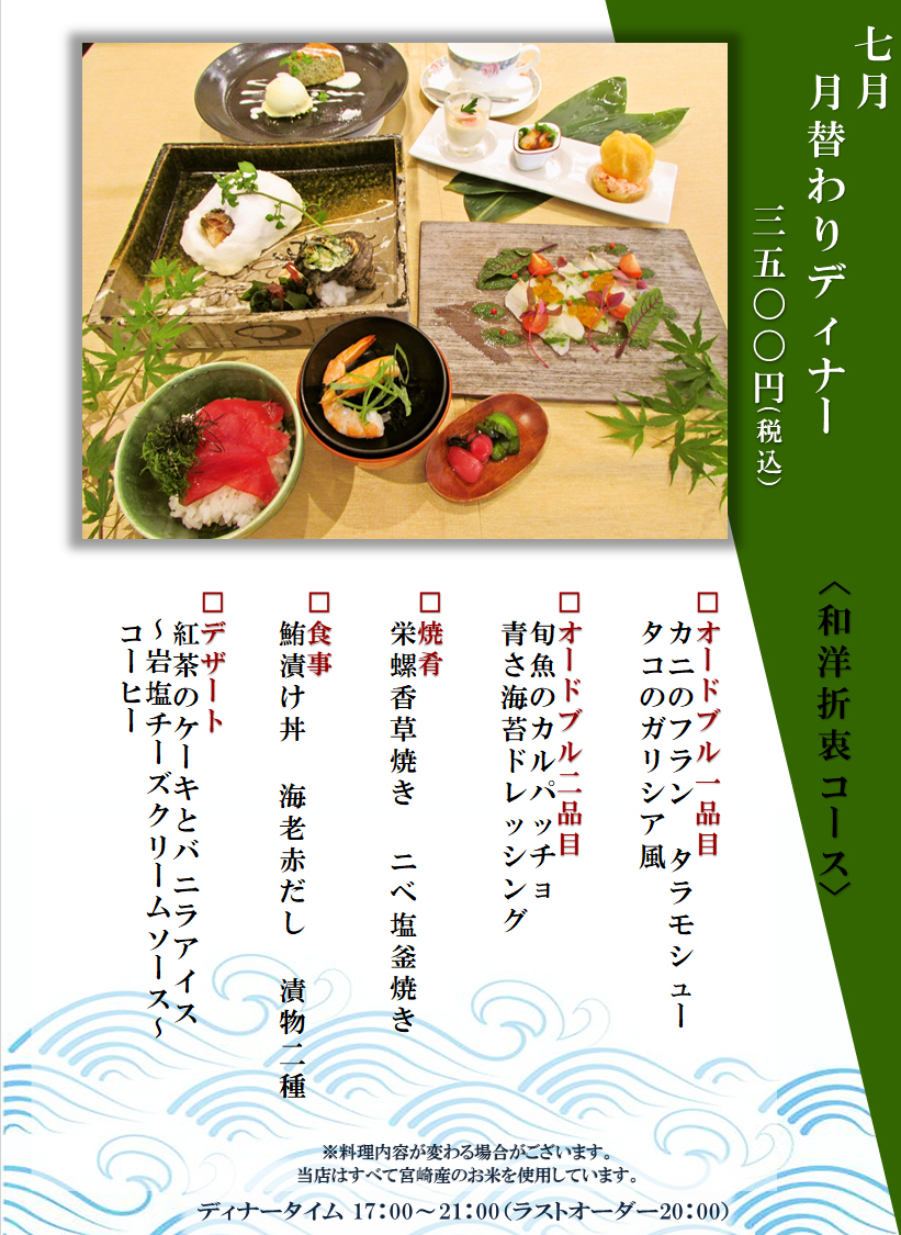 ヴィラ本栖 お食事 洋食編 7月東京、銀座・麻雀教室、習い事-銀座ファミリー麻雀教室。