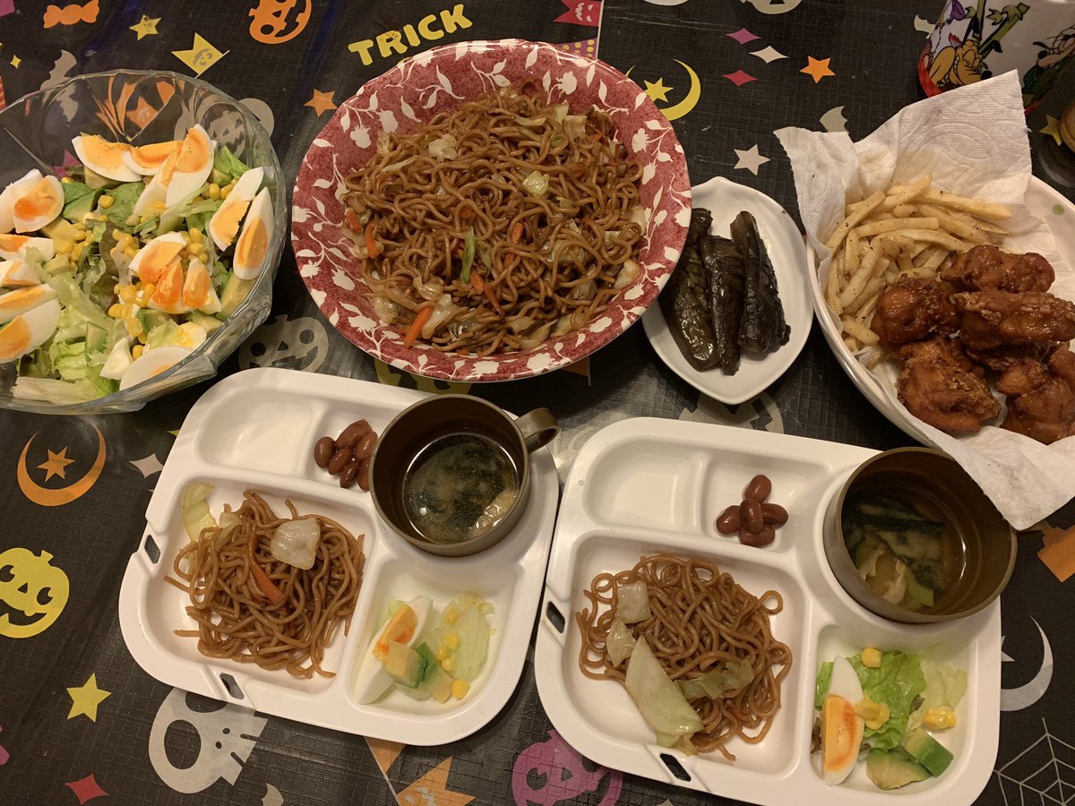あいりぃ on X: "月曜日の夜ごはん ・焼きそば ・卵サラダ ・唐揚げ&ポテト ・お豆さん ・油揚げと小松菜の味噌汁 交通公園で自転車の練習早く乗れるようになるといいね😊 夜はささっと焼きそばおうちごはんおうちご飯子供夜ご飯キッズごはん献立 https:t。