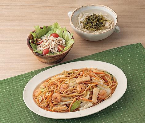 シーフード焼きそばゆで鶏のサラダ磯のりスープ 食材宅配のヨシケイ 夕食ネット レシピ・メニュー・献立付き。