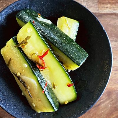 塩ダレきゅうりの一本漬け材料きゅうり6本 塩少々 ごま油大さじ4 お酢大さじ3 鶏がらの素大さじ3 おろしにんにく2cm※黒こしょう作り方①きゅうり6本の両端を落とし、皮を半分だけとる ②きゅうりを塩もみしたら洗ってしっかり水気をふきとる③ビニール袋でごま油、お酢、鶏がらの素、おろしにんにく、あれば黒こしょうを混ぜる ④③に②を投入したら冷蔵庫でひと晩寝かせて完成。