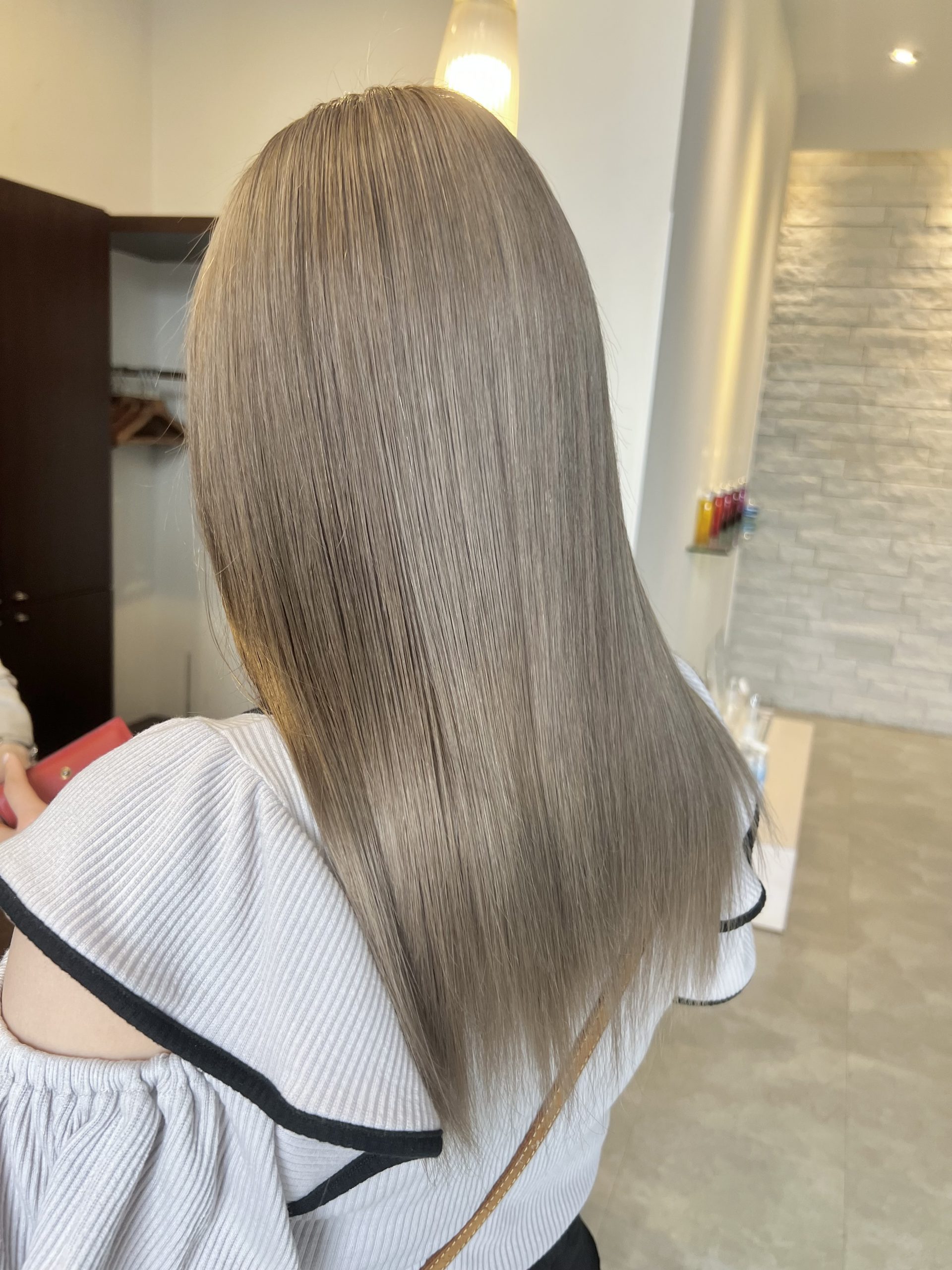夏のミルクティー大人気です🙆 ブリーチありで作るミルクティーから ブリーチなしで作るヘアカラーカタログ✨マンツーマン施術でカウセリングから仕上げまで しっかり担当致します🩵 △今まで理想の色にならなかった方圧倒的なカラー経験から髪の毛の状態に合わせて最適。