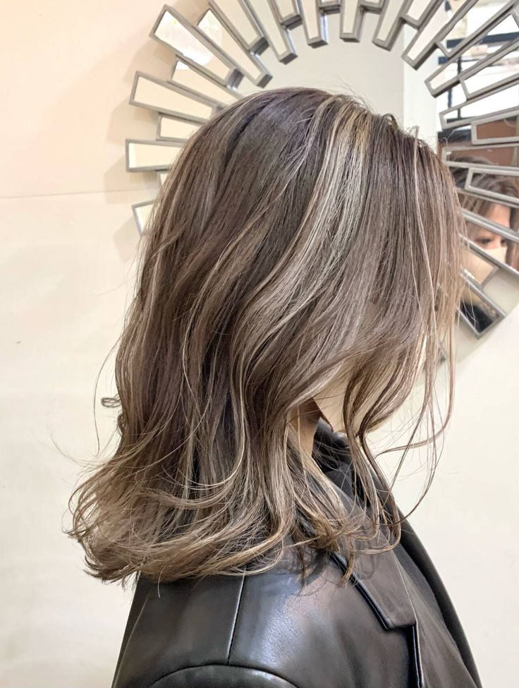 白髪ぼかしハイライトを使ったミルクティーベージュヘアカラーbex journal。