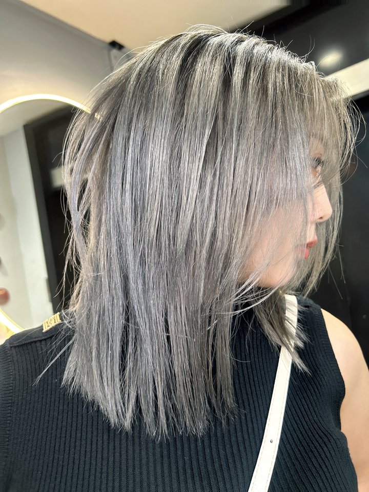 ミルクティーグレーの色落ちが可愛すぎる、レイヤーカットと合わせて最強に盛れる。