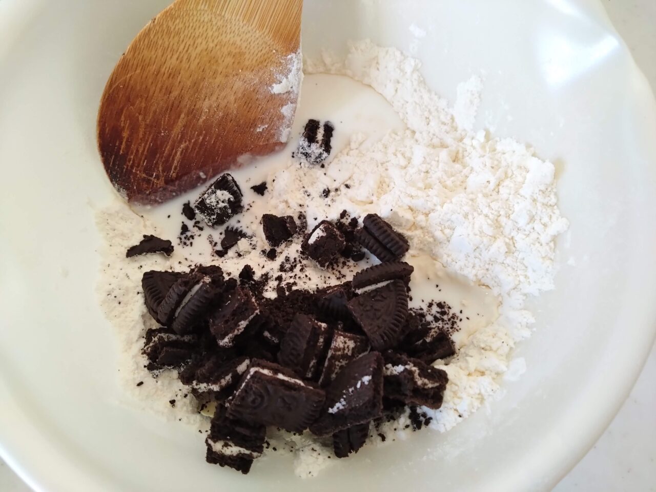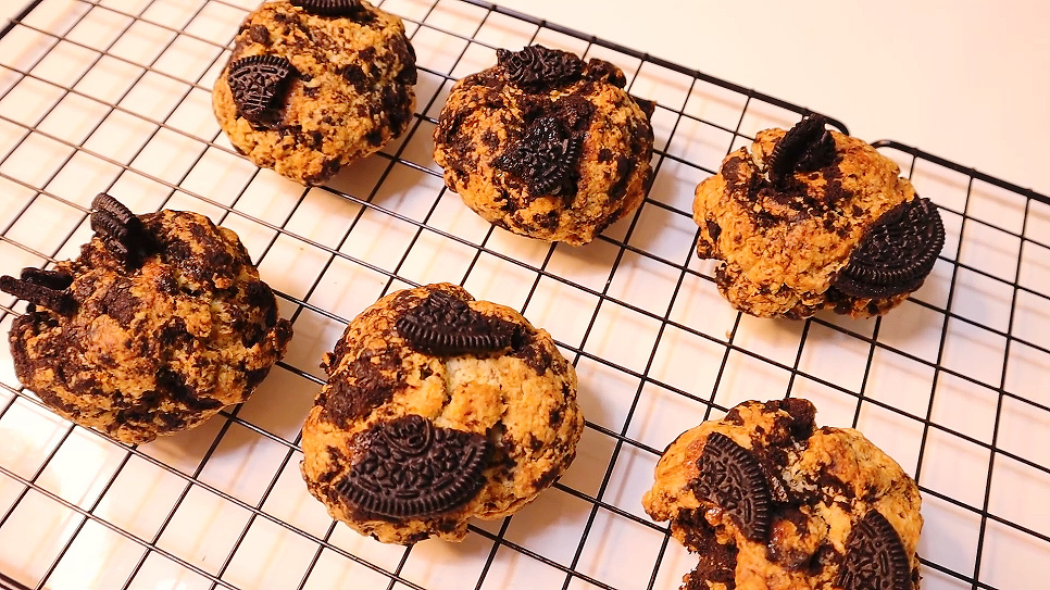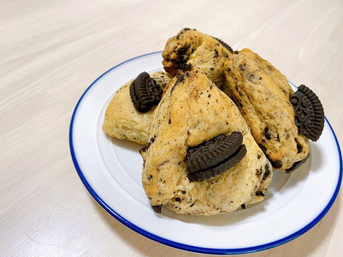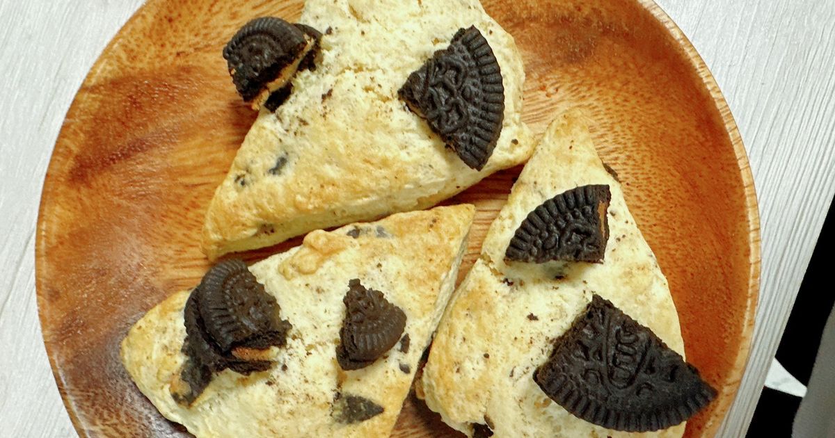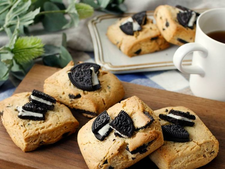 こんにちは!今日はオレオクッキースコーンを作りたいと思います 🍪 オレオクッキーをクリームごと加えたサクサクでクリーミーな食感のスコーン です。1個に1枚オレオが入っています。簡単に作れるスコーンですので、ぜひ試してみてください! ⚫︎材料:6個分 - オレオ。