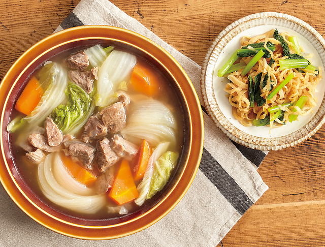 大根と鶏肉の和風ポトフの献立 副菜:じゃがいものおやき、副菜:チンゲン菜の納豆じょうゆかけ 献立・メニュー 味の素パーク たべる楽しさを、もっと。