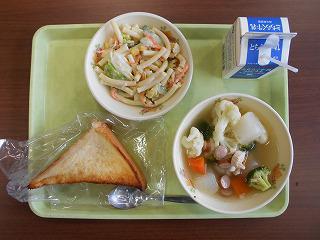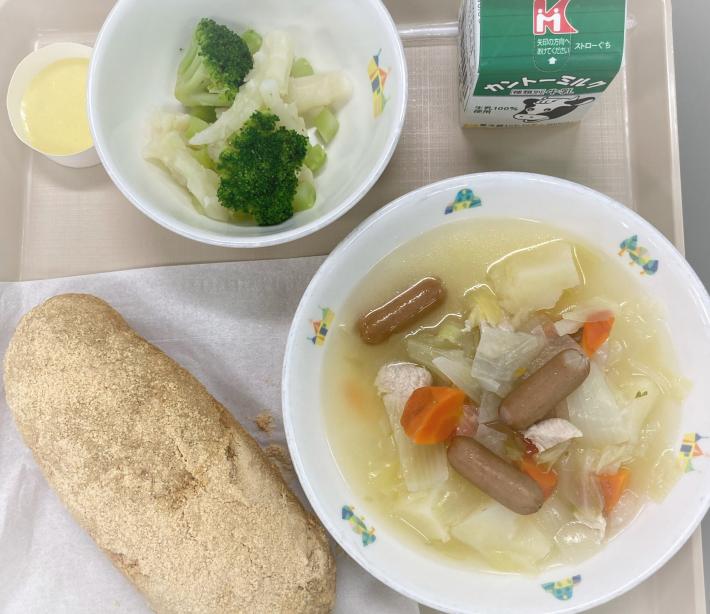 取手市 SDGs料理 ポトフ、花野菜サラダ、きなこ揚げパン 学校給食のレシピ。