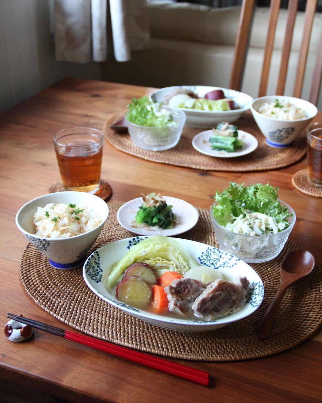 和風ポトフの献立 主食:残り野菜で炊き込みご飯、副菜:キャベツ塩昆布和え 献立・メニュー 味の素パーク たべる楽しさを、もっと。