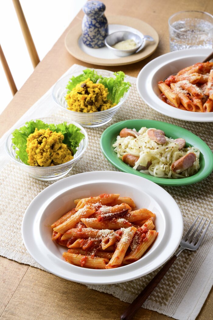 ポトフの日は簡単にパスタで済ませる夕飯♡ ポトフレシピは一つ前の投稿で!パスタ夕飯夜ご飯晩ごはん食卓献立トマトクリームパスタポトフスープよるごはんよしざわ窯器。