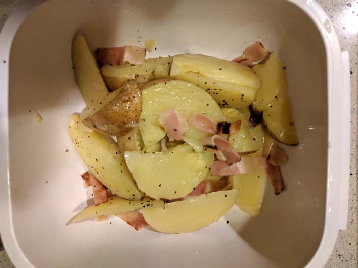 電子レンジで簡単じゃがいも皮付きポテトベーコンを作った グルラボレシピ。