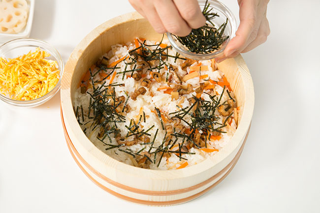 海苔たっぷりの鶏ちらし寿司山本海苔店のおいしいレシピ。