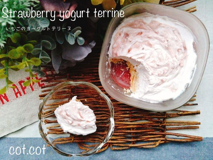 材料4つ 口に入れた瞬間とろけるいちごのヨーグルトテリーヌの作り方。