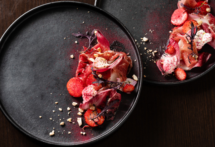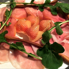 お料理 ▽生ハムと季節のフルーツ、リコッタチーズのサラダ<Lecce <レッチェ>>映画のワンシーンのようなお洒落なバール大阪 市中央区のおすすめグルメなら旅色。