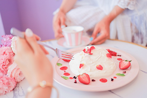 美味しそうなケーキをフォークで食べようとする瞬間のフリー画像おしゃれ・かわいい無料写真素材:GIRLY DROP。