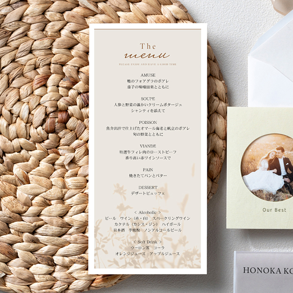 シアーツリー ウォームホワイト 結婚式 メニュー表結婚式 メニュー表ならPIARY ピアリー。
