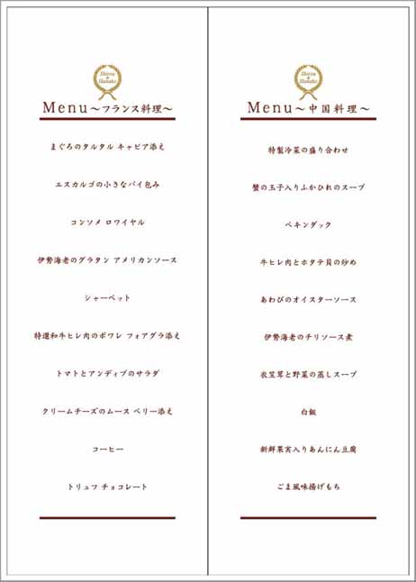 披露宴のメニュー ヴェールノアール峠おやじの「たわごと」。