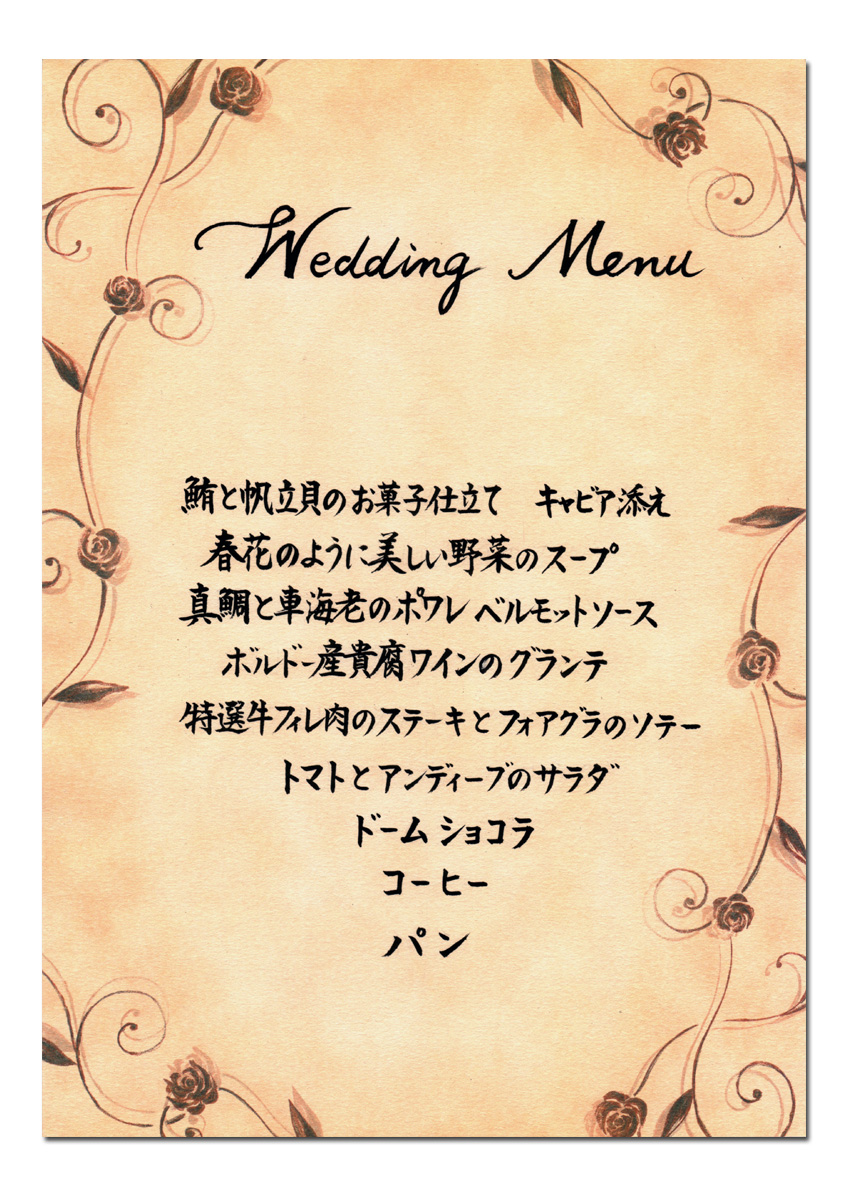 結婚式のメニュー表にもこだわって、美味しく食べてもらう。魔女見習い日記。