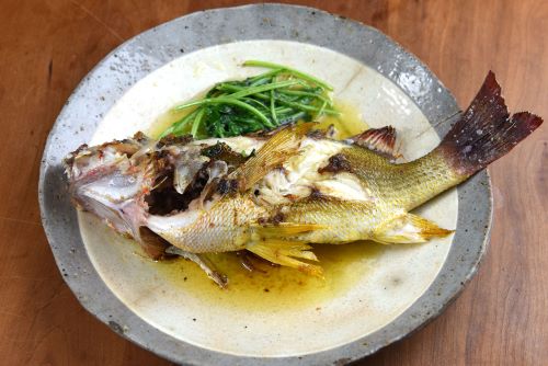 高級魚 箸が止まらない、沖縄の魚のバター焼きを堪能。