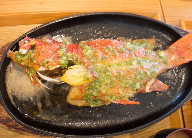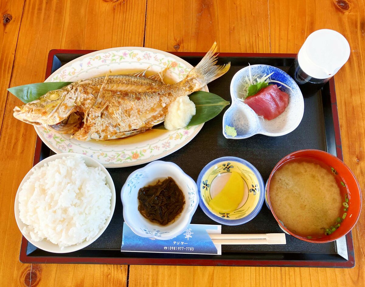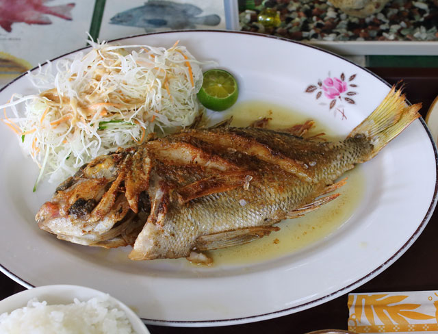 那覇・赤嶺「魚屋直営食堂 魚まる」で沖縄の大きな魚一匹まるごとバター焼き定食沖縄ランチブログZ。