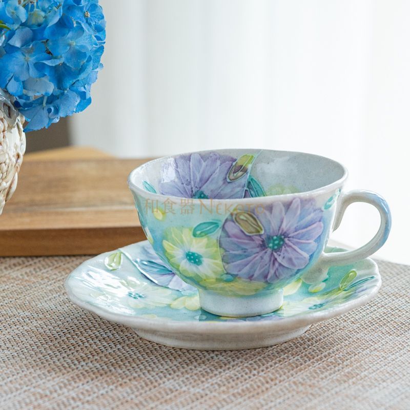 日本製工房「風花」 彩粉引花紋 コーヒー*碗皿 カップ ソーサ― セット 花柄 おしゃれ かわいい カフェ 喫茶店 日本製 陶器 瀬戸焼 和食器 食器手描き プレゼント 贈り物 ギフト 母の日 敬老の日 誕生日楽天市場工房風花 彩小花 コーヒー碗皿 緑ティー碗皿。