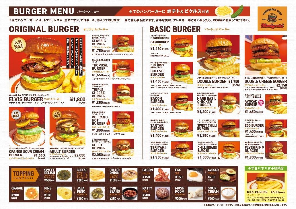 ハンバーガーショップ富吉」様 メニュー福岡で居酒屋・飲食店のメニュー表デザイン制作は 店舗販促応援隊。