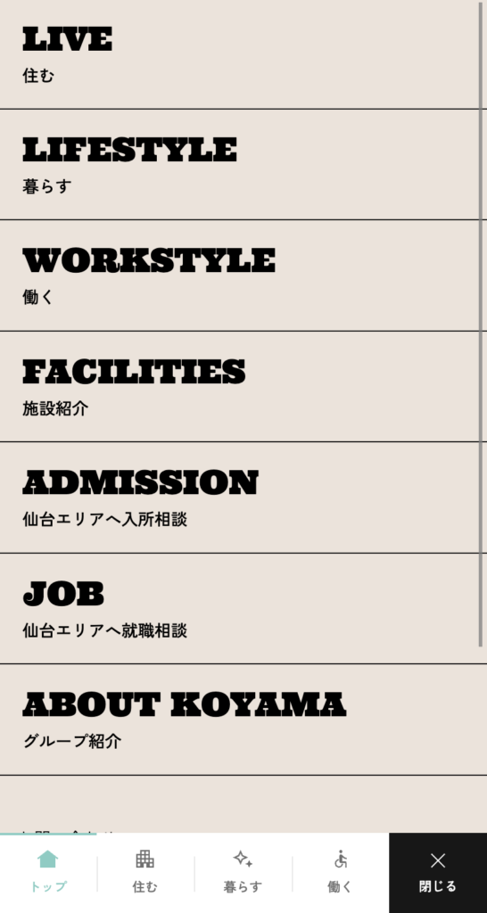 ハンバーガーメニューのデザイン参考事例4選!ちょっとした工夫でおしゃれなサイトを!トゥモローゲート。