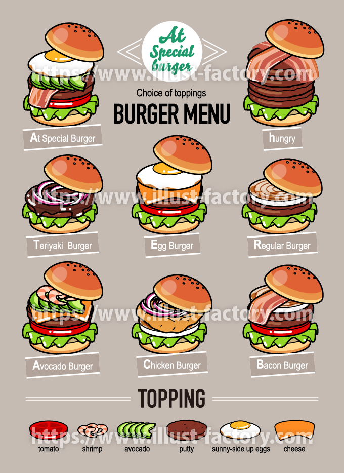 ハンバーガー店のメニュー用イラスト H230イラスト工房。