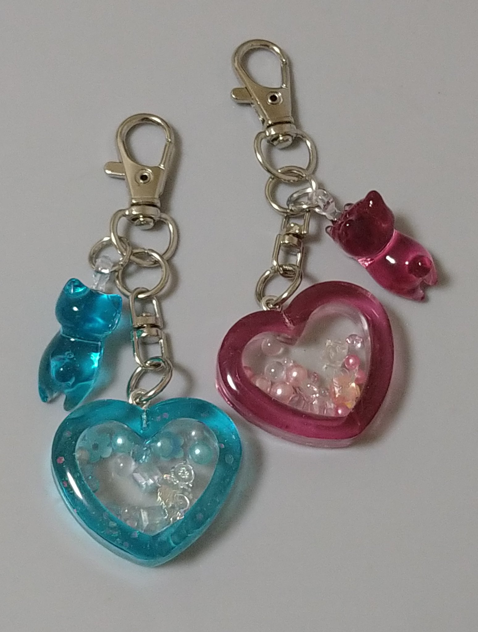レジン Resin ほぼ100均材料を使ってハートシェイカーキーホルダーを作ってみました*watch me resin。